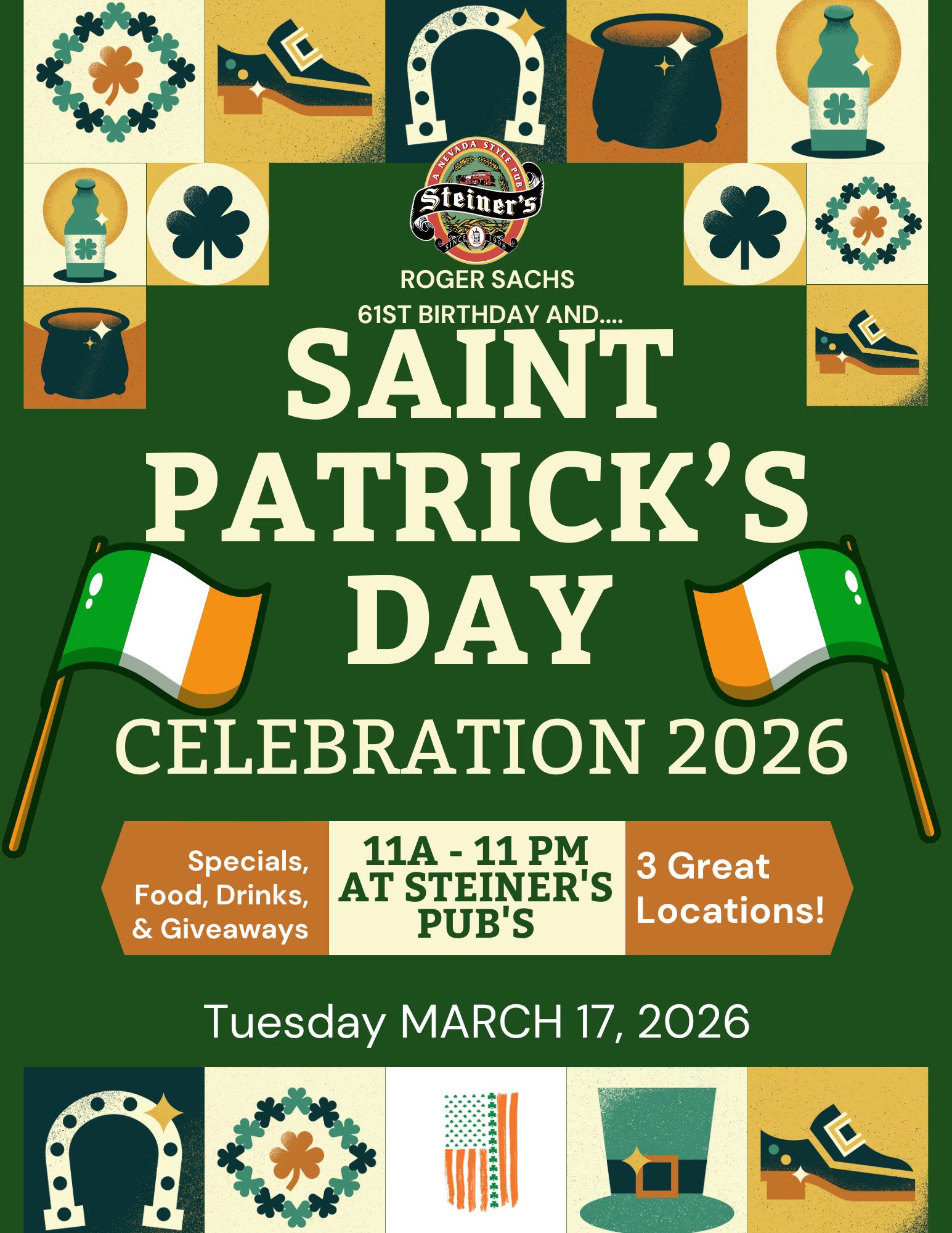 Steiner’s, A Nevada Style Pub, is a three-unit gaming restaurant and bar that offers an extensive menu, a wide selection of top-notch beer and liquors, a multitude of gaming promotions and special events, and authentic décor and memorabilia that encapsulates the history of Nevada.